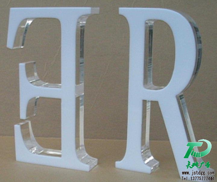 因為各自的溶點不同,所以,是分開來雕刻還是粘合后再雕刻就得跟據(jù)所買的材料來定。以便節(jié)約加工時間。水晶字由燈光照射看起來非常好看,它可以用在室內(nèi)和室外,不怕日曬雨淋。是一種性價比較高的高檔字??勺稣信谱?,也可做其它裝飾字。