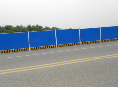施工圍擋廣告采用藍色輕質夾心彩鋼板,彩鋼厚度為0.3mm,高度2米,圍擋廣告頂部及底部分別設置10cm高的鋼槽壓頂和鋼槽托底,每隔2.9米設一個錨固于地面的鋼立柱,立柱下座為50cmX50cmX50cm的C25基礎,鋼柱底板四角采用膨脹螺栓與混凝土基礎連接固定,既可以減少占地,又可保證圍擋穩固、整齊、美觀